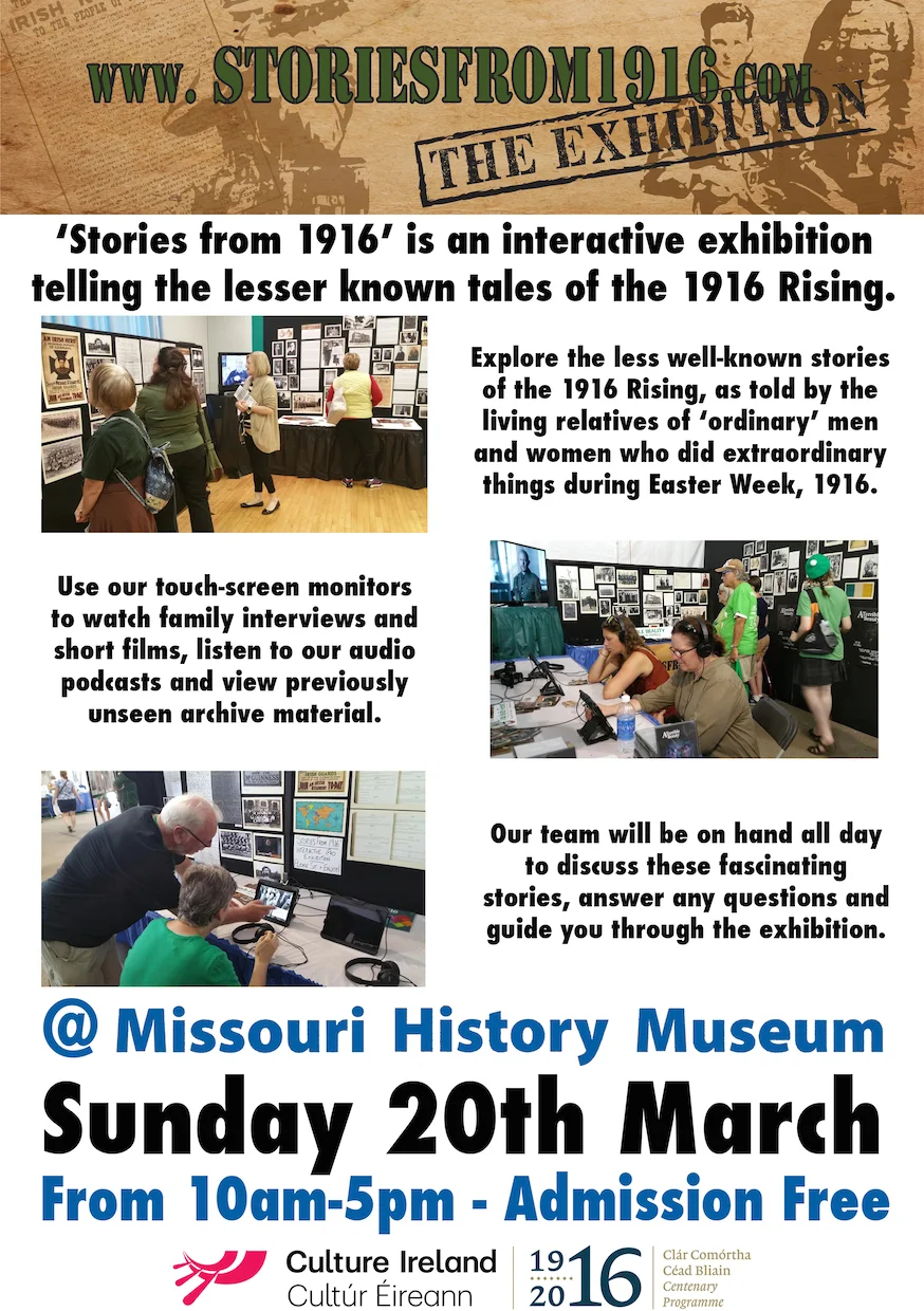 Also on the day, the 'Stories from 1916' team will host their free interactive exhibition at the museum from 10am-5pm. Hope you can make it St. Louisans!
